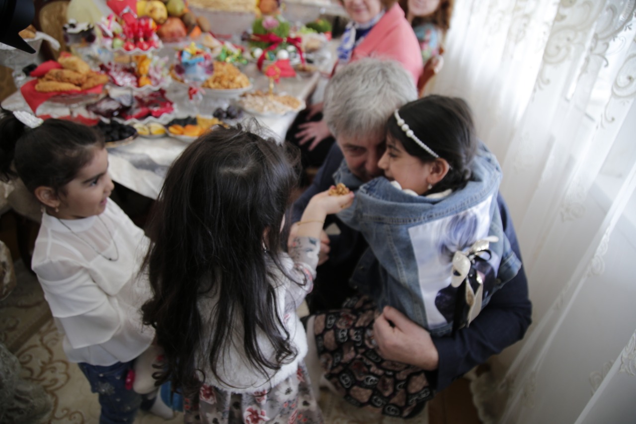 За праздничным столом в доме председателя общины Джума-мечети Сейид-Яхьи Сеидова собрались его дети и внуки. Все они с самого раннего возраста очень ждут праздник Новруз Байрам и знают все его традиции.