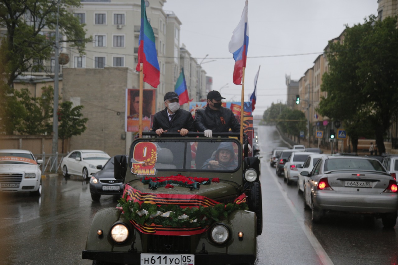 Глава Дербента Хизри Абакаров, председатель городского Собрания депутатов Мавсум Рагимов, начальник Службы в городе Дербенте Пограничного управления ФСБ России по РД Михаил Поддубный, военный комиссар городов Дербент, Дагестанские Огни и Дербентского района Адиль Кулиев проехали по главным улицам города на военных машинах, откуда звучала песня «День Победы». Дербентцы присоединились к общероссийским акциям «Бессмертный полк у дома твоего» и «Окно Победы». В момент приближения праздничного картежа горожане выходили на балкон и выглядывали в окно с портретами своих родственников – участников Великой Отечественной войны, а также исполняли песню «День Победы».