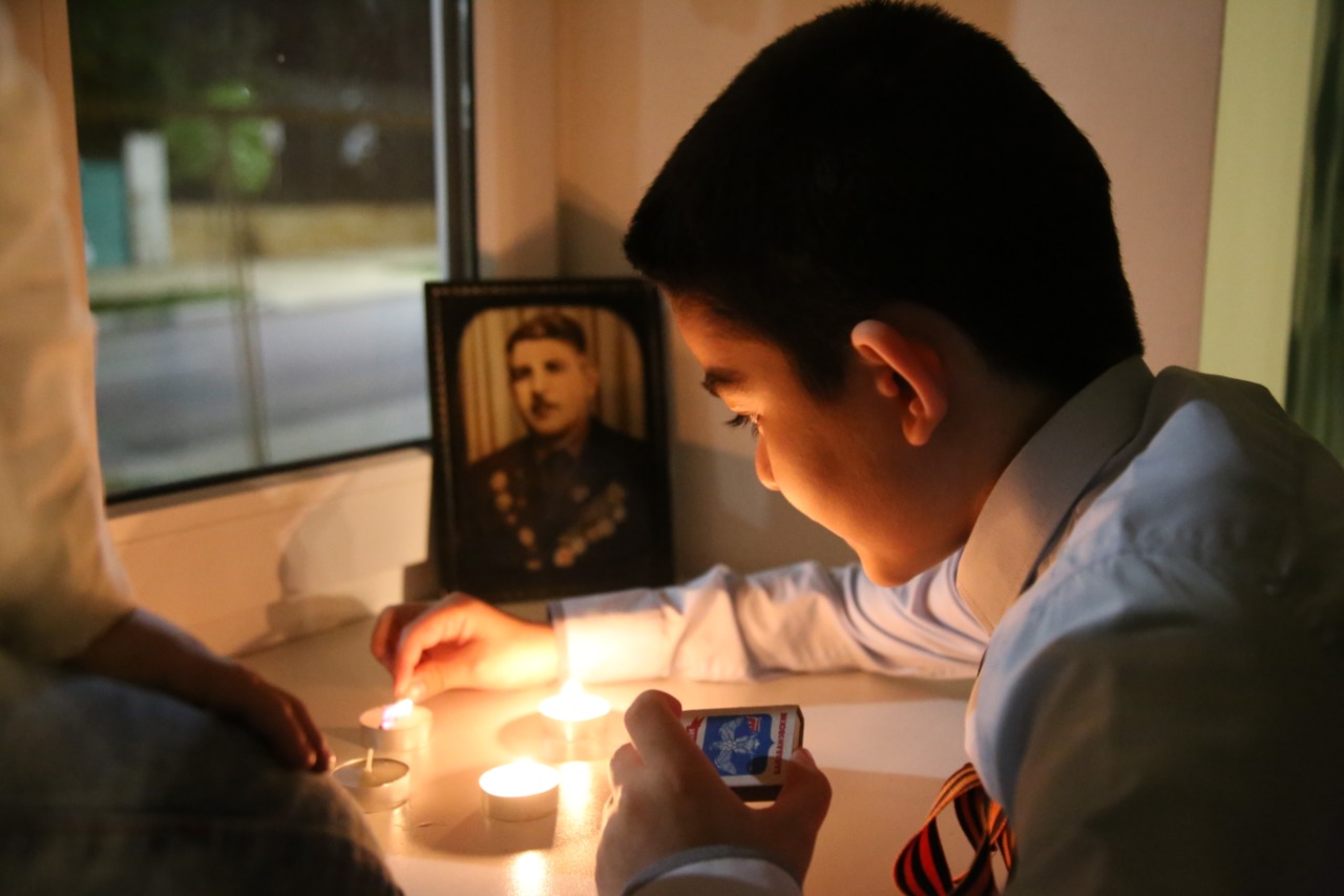 Ровно в 21.00 жители города в память обо всех, кто внес вклад в Великую Победу, зажгли у окон фонарики и свечи. Некоторые использовали в качестве источников света экраны смартфонов.