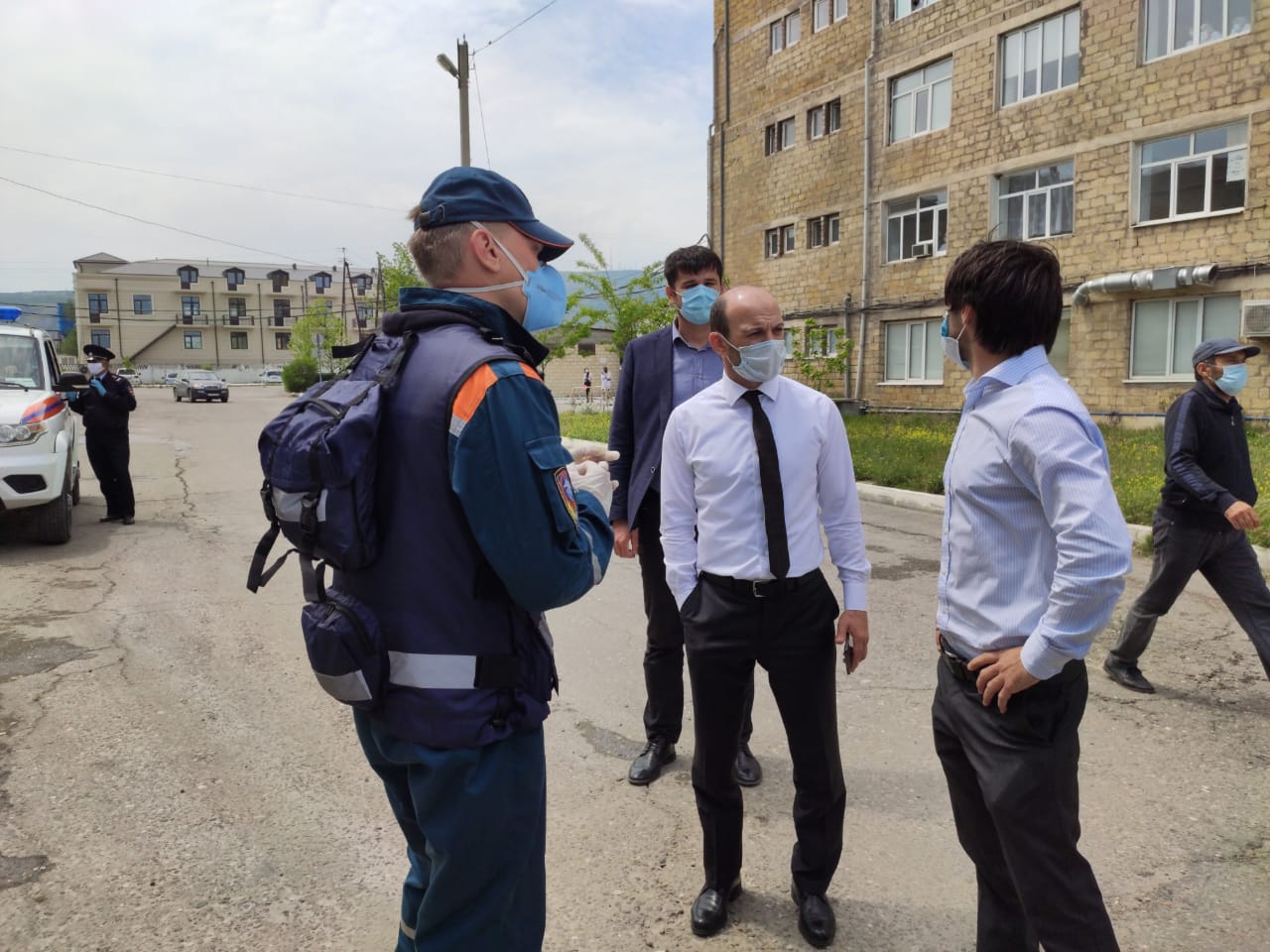 Специалисты МЧС готовятся к мероприятию по дезинфекции центральной больницы Дербента. Напомним, что оперативная группа из 17 человек фракционной химической и биологической защиты Ногинского спасательного центра МЧС России прибыла в Дербент с 2 единицами техники для проведения дезинфекции в общественных местах и социальных объектах города. Специализированные автомобили уже проехали по улицам Дербента и обеззаразили проезжую часть. Пешая группа проводит дезинфекцию внутри объектов, первым из них стал призывной пункт, затем парк Революционеров на улице Пушкина. Сейчас дезинфекцию планируется провести в центральной городской больнице. Дезинфекция проводится 1,5% раствором гидрохлорида натрия. Сегодня, 22 мая заместитель главы администрации Шамиль Алиев осмотрел территорию центральной городской больницы, чтобы определить комплекс мероприятий по её дезинфекции. На встрече также присутствовал главный эпидемиолог, заместитель главного врача по административно-хозяйственной части и представители МЧС Ногинского спасательного центра. Они обошли всю территорию больницы, осмотрели помещения, определили маршрут движения, методологию действий по дезинфекции. «Спасибо работникам дербентского учреждения «Горсервис», которые ежедневно, с раннего утра проводят дезинфекцию по улицам города и на территории больницы. В настоящее время основная наша задача - это разобраться с помещениями. Начинаем дезинфекцию с чистой зоны, плавно перейдем к красной, где лечат тяжелобольных граждан», - поделился заместитель главы администрации Шамиль Алиев. Шамиль Алиев в ходе осмотра территории больницы также обратил внимание на гражданских машин, которые могут помешать при дезинфекции территории больницы. Он предложил закрыть доступ автомобилей на территорию центральной городской больницы. «Для парковки машин на данной территории имеется стоянка. Необходимо также распрелелить заезжающие машины за пределы шлакбаума. Вчера мы провели совещание с заместителем главного врача и юристом. В ходе встречи было принято решение о введении режима ЧС. Это позволит ужесточить проникновение граждан на территорию больницы, которые приходят посещать больных. Необходимо временно приостановить график посещения больных. Предлагаю создать команду волонтеров из числа студентов медицинского колледжа, обеспечить их защитными костюмами, которые будут у входа больницы встречать граждан, забирать у них продукты питания для больных, заносить их по палатам. Данное мероприятие уменьшит риск распространения вирусной инфекции», - отметил заместитель главы Шамиль Алиев.
