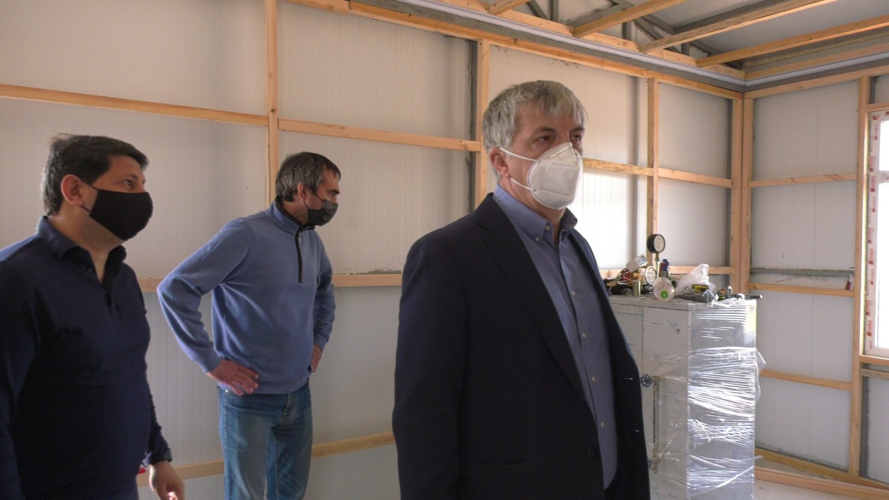 Также он осмотрел помещение, в котором установлена дезинфинционная камера. Здание будет достроено в течение двух дней.