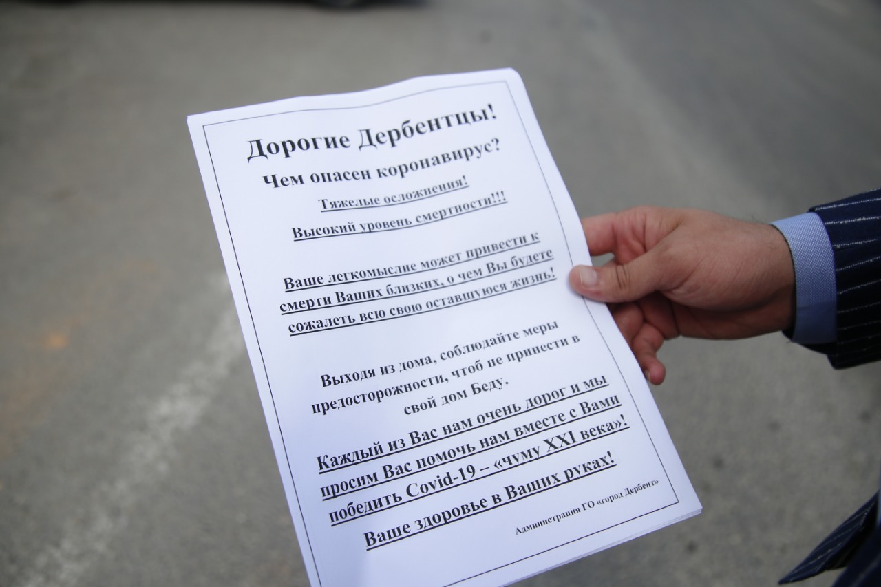 В мероприятиях принимали участие глава Дербента Хизри Абакаров и главный санитарный врач РД Николай Павлов. Они вместе с волонтерами раздавали памятки по профилактике коронавирусной инфекции, призывали носить маски, перчатки и соблюдать социальную дистанцию.