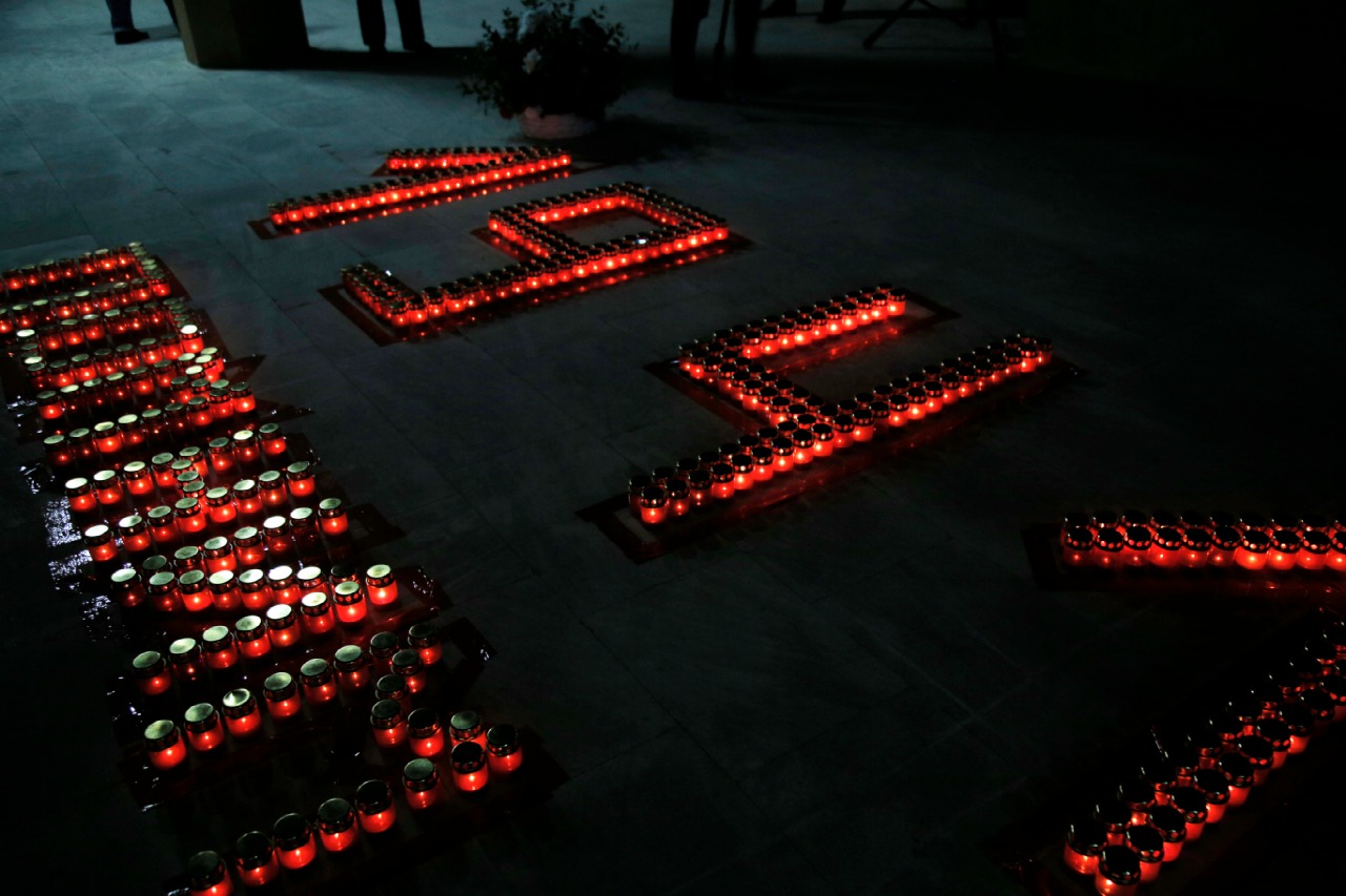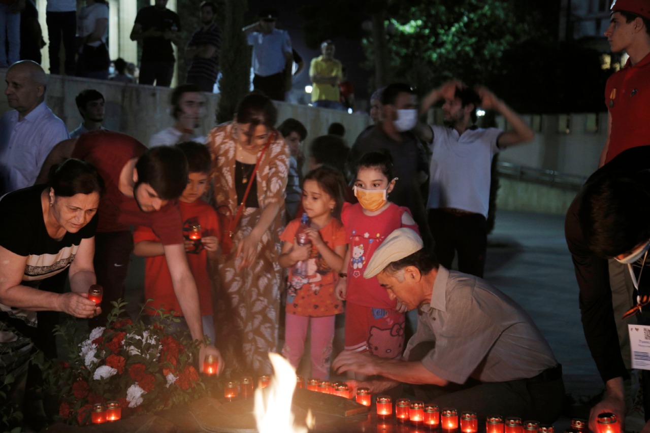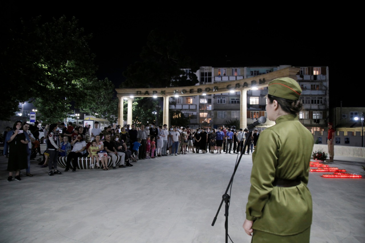 В день акции «Свеча памяти», дербентцы выложили из 500 зажжённых свечей слово «Помним»