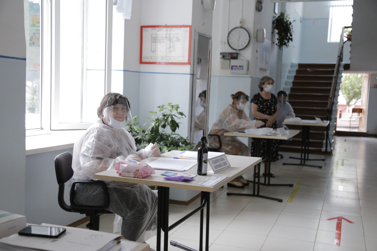Мэр Дербента Хизри Абакаров и председатель городского Собрания депутатов Мавсум Рагимов побывали на участке голосования №0491 Сегодня, 26 июня мэр Дербента Хизри Абакаров и председатель городского Собрания депутатов Мавсум Рагимов побывали в школе №3, где развернут участок голосования 0491. На пол здания учебного заведения нанесены разметки, которые помогают выдерживать социальную дистанцию. Члены участковой избирательной комиссии обеспечены специальными защитными костюмами, масками и перчатками. Каждому голосующему выдают индивидуальные наборы со средствами защиты и одноразовой ручкой. Расстояние между кабинками для голосования и стульями членов избирательной комиссии составляет 1.5 метра. Кабинки для голосования оборудованы таким образом, чтобы в них циркулировал воздух, а человек не касался шторки. Напомним, что с 25 июня по 1 июля пройдет всероссийское голосование по вопросу одобрения поправок в Конституцию. Для участия в голосовании необходимо иметь при себе паспорт. Голосование будет проводиться с 8:00 до 20:00.
