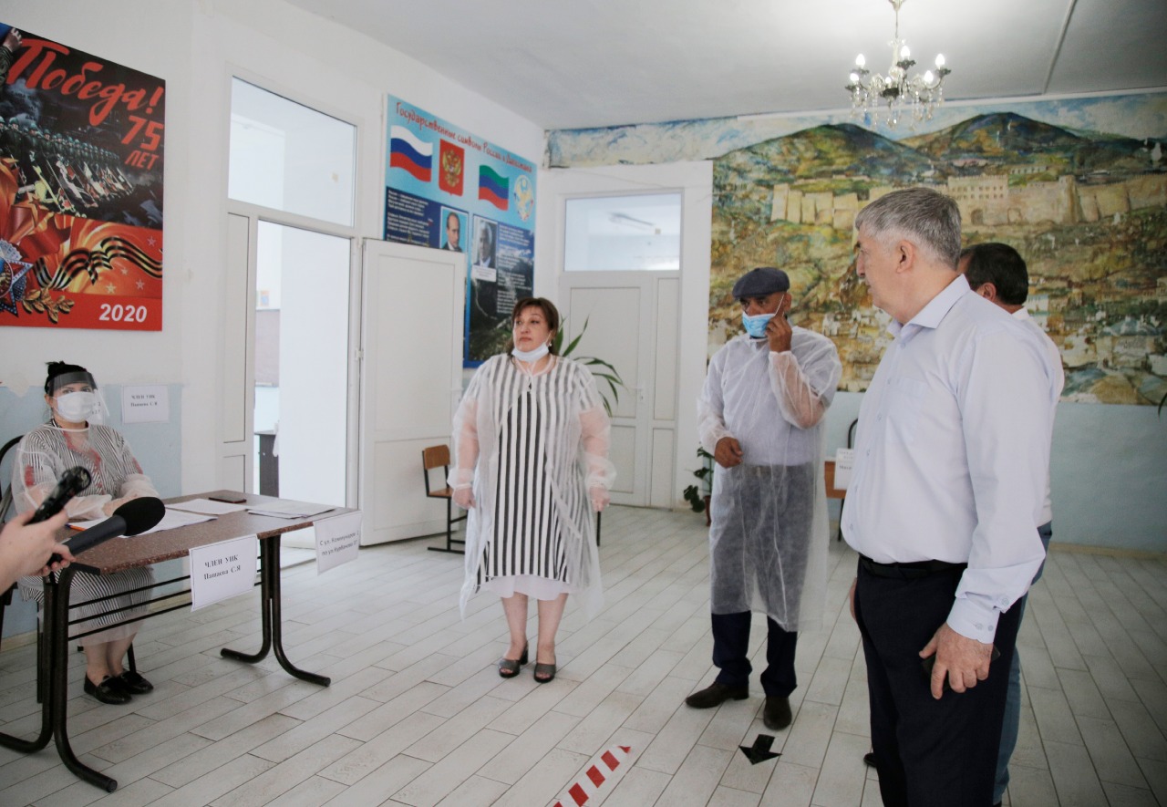 Мэр Дербента продолжает проверять работу участков для голосования Глава Дербента Хизри Абакаров и председатель городского Собрания депутатов Мавсум Рагимов продолжают проверять качество организации работы на участках голосования по поправкам в Конституцию РФ. В этот день глава города побывал на участке для голосования – №0485, расположенном в специальной коррекционной общеобразовательной школе-интернат № 7. Член избирательной комиссии продемонстрировал, как проходит процедура регистрации голосующих. «При входе, после того как граждане проходят через дезинфекционный коврик, им выдают отдельные пакеты с масками, перчатками и одноразовой ручкой. Каждый голосующий проходит процедуру бесконтактного измерения температуры», - отметил член избирательной комиссии. Чтобы обезопасить процедуру голосования на участке строго соблюдена социальная дистанция. Для этого на полу обозначены навигационные знаки и линии, за которые голосующим нельзя переступать.