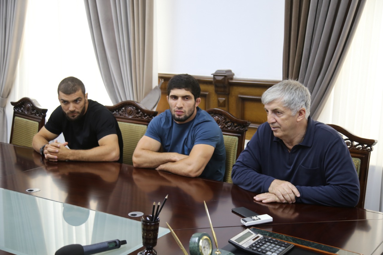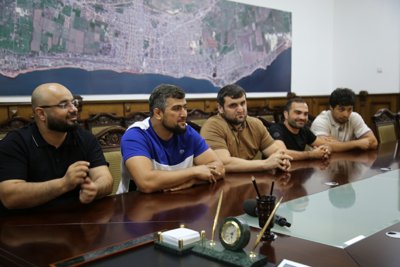22 июля глава городского округа «город Дербент» Хизри Абакаров встретился с депутатом Народного Собрания РД Вели Фаталиевым и известными дагестанскими спортсменами. В их числе был и воспитанник дербентской школы вольной борьбы, чемпион Европы Даурен Куруглиев.