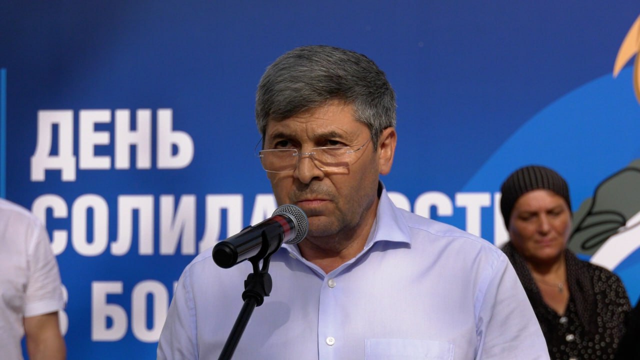 Перед участниками митинга также выступил председатель городского совета ветеранов войны и труда Гаджимурад Гаджимурадов, рассказавший о борьбе дагестанцев в 1999 году с террористами международных бандформирований.