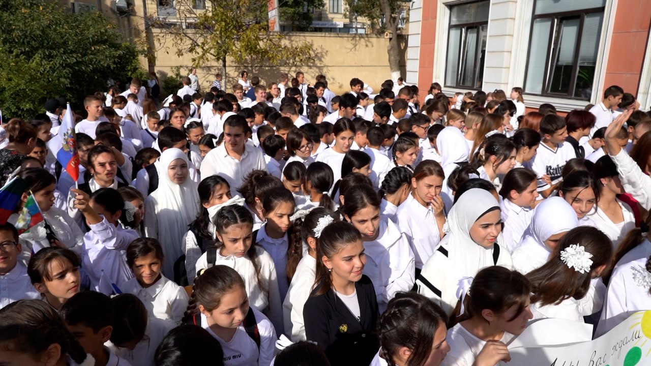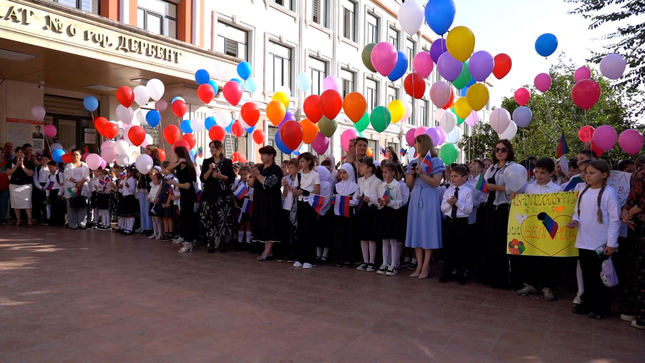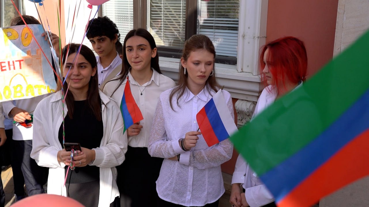 Сегодня, 9 сентября, на территории школы-интерната №6 в г. Дербент прошла торжественная встреча ребят из Белгородской области. Всего прибыло 92 ребенка.