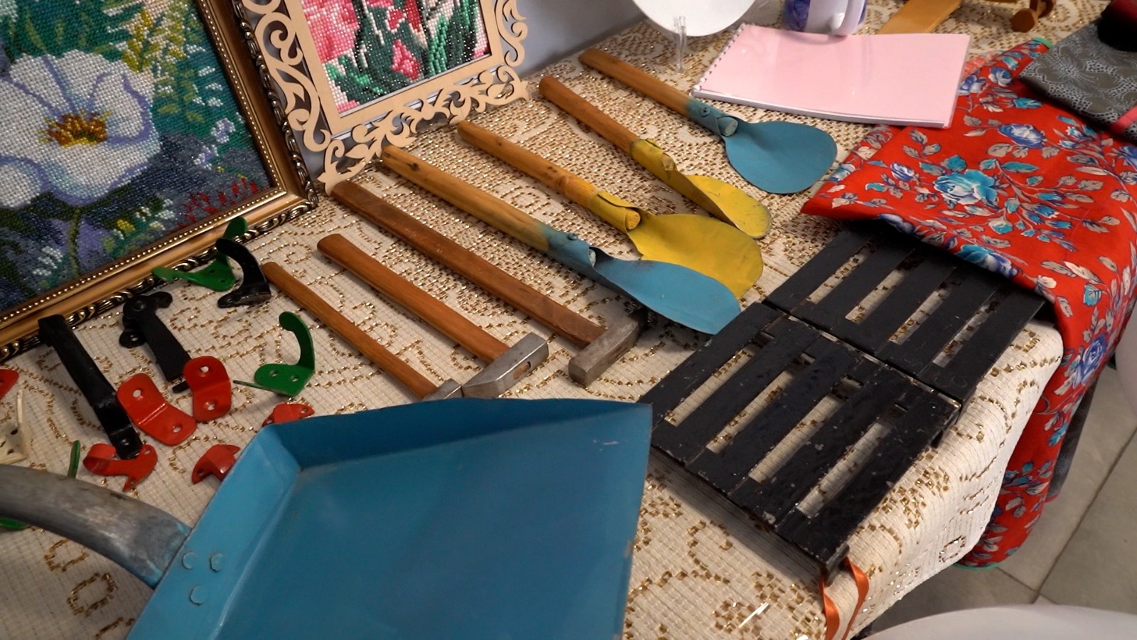 На ярмарке были представлены разнообразные поделки: изделия типографии, блокноты, коврики, рисунки из бисера, фартуки, сувенирная посуда, картины, молотки, совки, прихватки, а также домашняя выпечка и традиционные блюда.