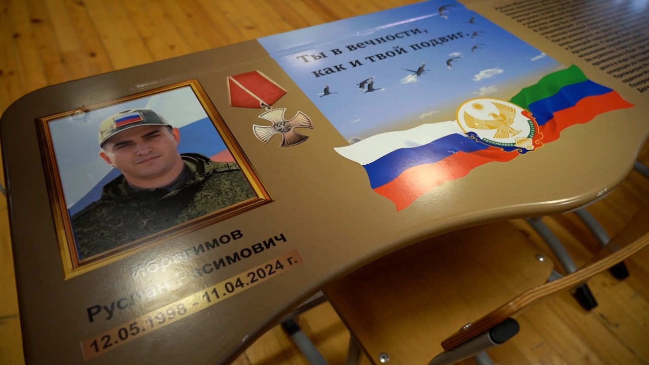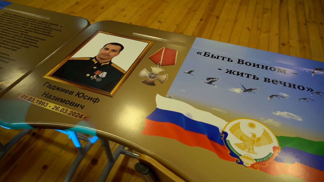 Именные парты посвящены выпускникам этой школы, участникам специальной военной операции на Украине - Руслану Ибрагимову и Юсифу Гаджиеву, посмертно удостоенным ордена Мужества.