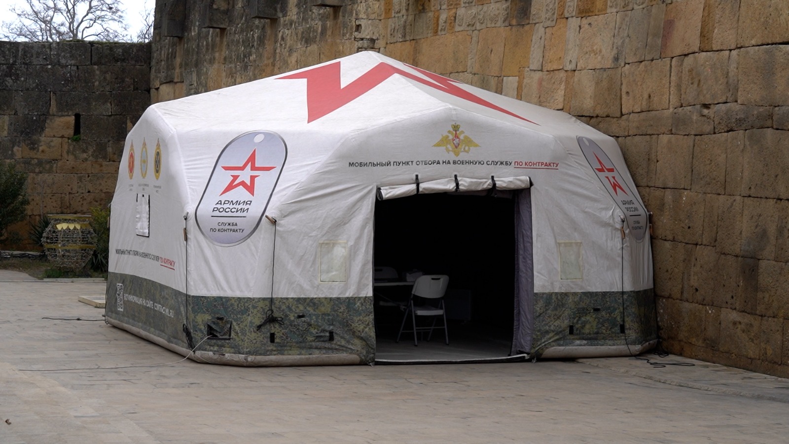 В Дербенте в сквера Даш-капы размещен мобильный пункт отбора на военную службу по контракту в Вооруженные силы России.