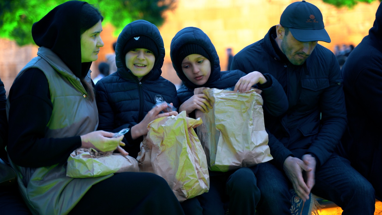 Для постящихся были подготовлены наборы с едой и специальное мультимедийное фонтанное шоу.