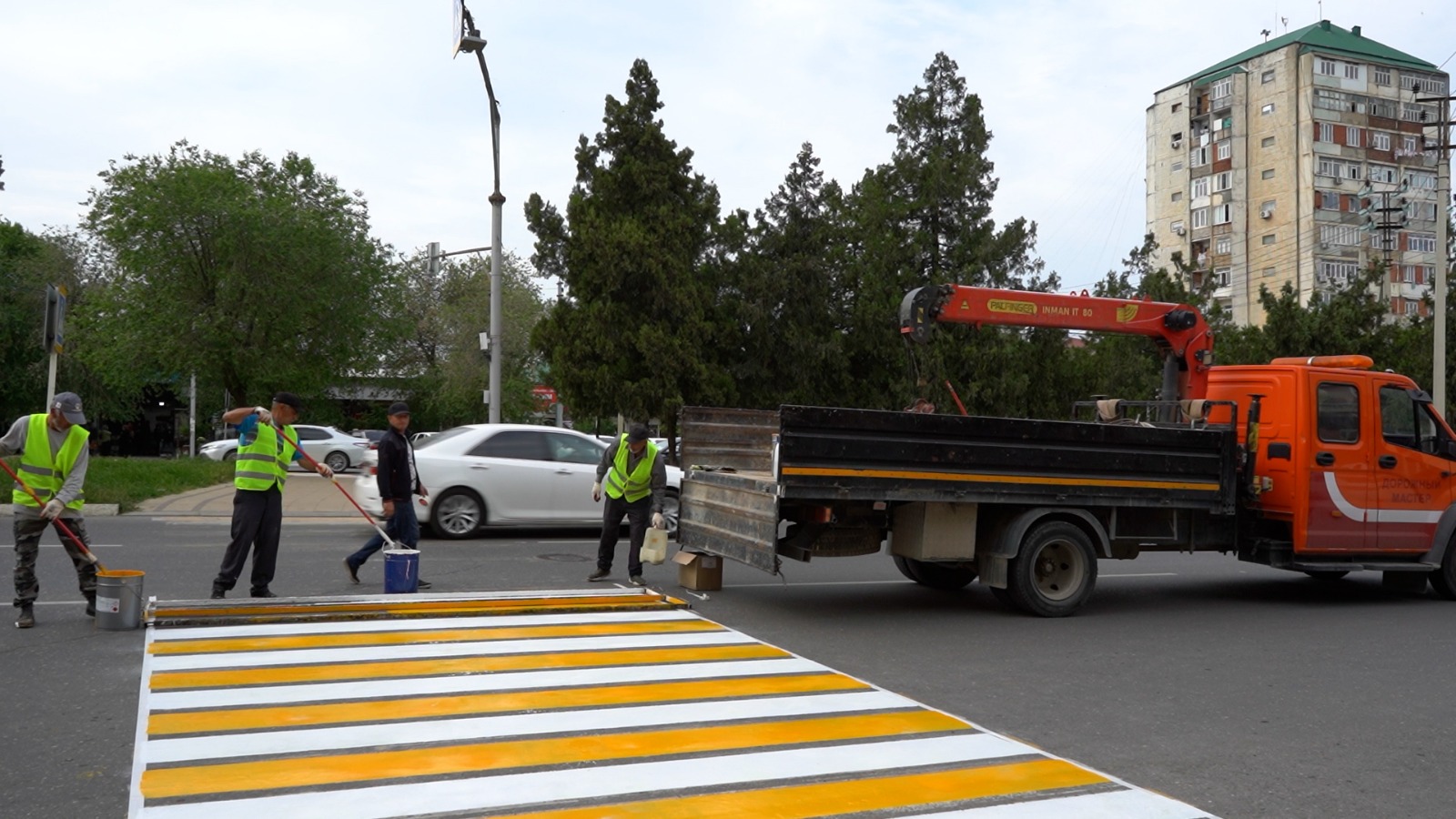 Управление городского хозяйства Дербента проводит плановые работы по обновлению дорожных разметок и покраске пешеходных переходов на улицах города. Работы проводятся по улицам 345-й стрелковой дивизии, Гагарина, Генерала Сеидова, Сальмана и Буйнакского.