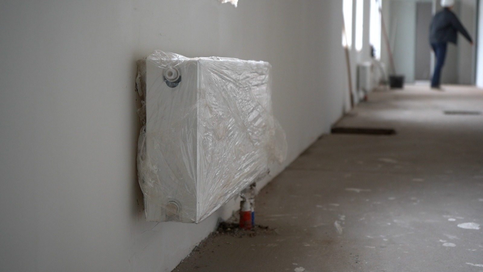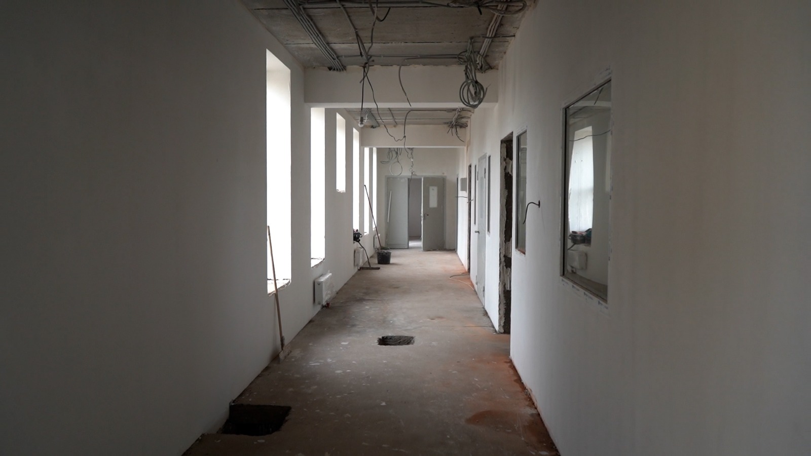 Представитель подрядной организации ООО «МагМа Групп» Руслан Алиев добавил, что выполнены штукатурные работы, заказаны потолочные конструкции, завершена стяжка полов и проведено электричество.