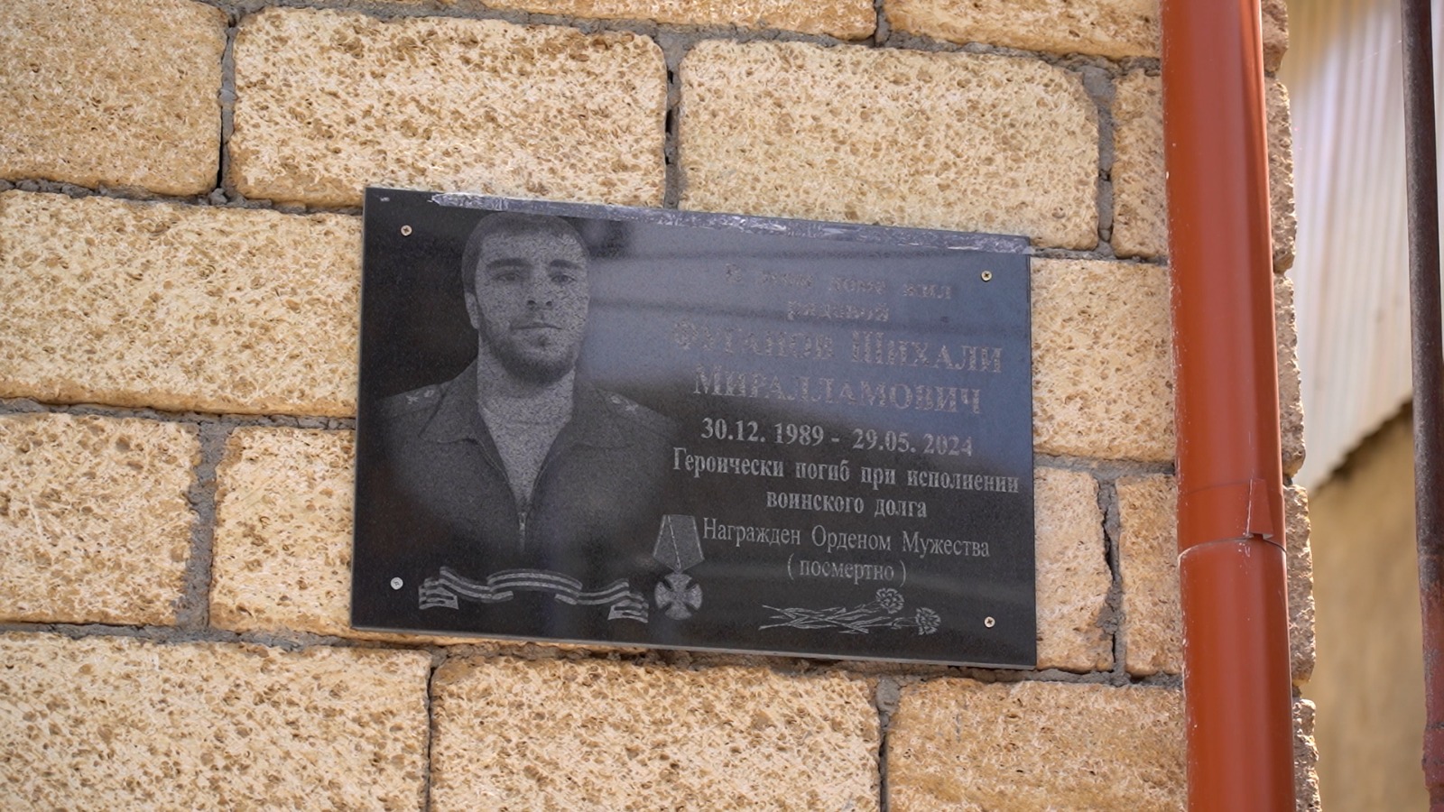 Сегодня, 27 мая, в Дербенте прошло открытие мемориальной плиты участнику специальной военной операции, кавалеру ордена Мужества Шихаили Фуганову, погибшему при исполнении воинского долга. Доска установлена на фасаде дома на 4 магале, где он проживал.