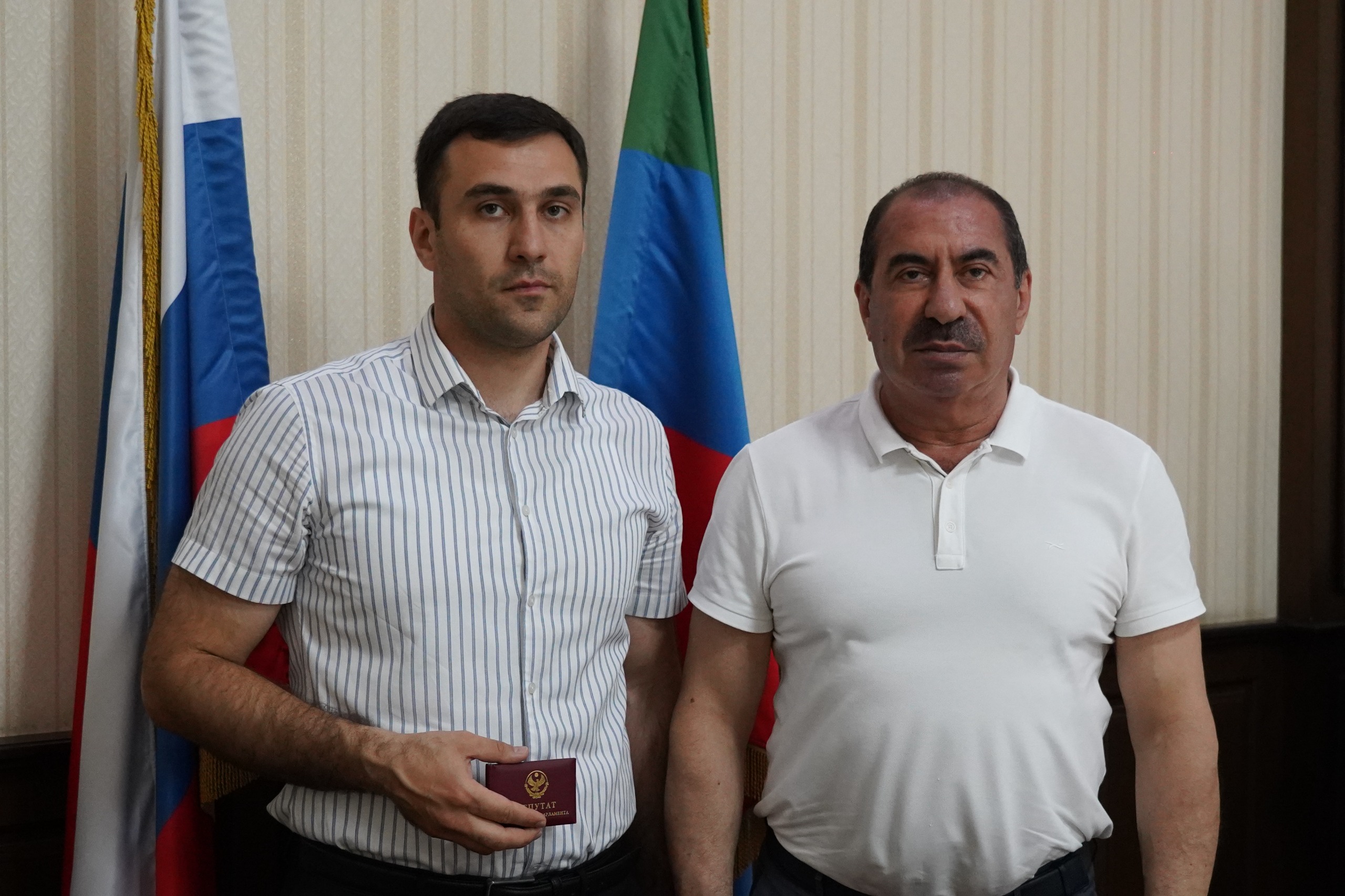 Заседание началось с приятной миссии: депутатам Молодежного парламента 4 созыва при Собрании депутатов городского округа «город Дербент» были вручены удостоверения.