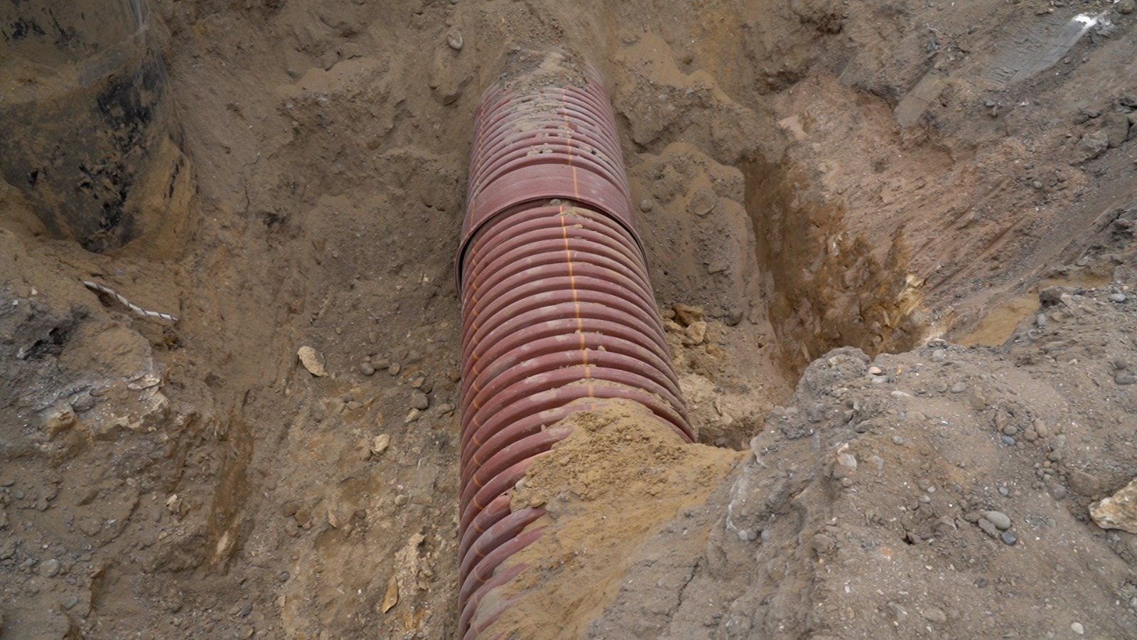 На данный момент завершены следующие этапы: устройство ливневой канализации (857 м.п.), устройство хозяйственно-бытовой канализации (280,7 м.п.), устройство подпорной стены (349 м.п.) и прокладка труб водоснабжения (145 м.п.). В настоящее время ведутся работы по обратной засыпке траншей после прокладки водопровода и демонтажу опалубки подпорной стены.
