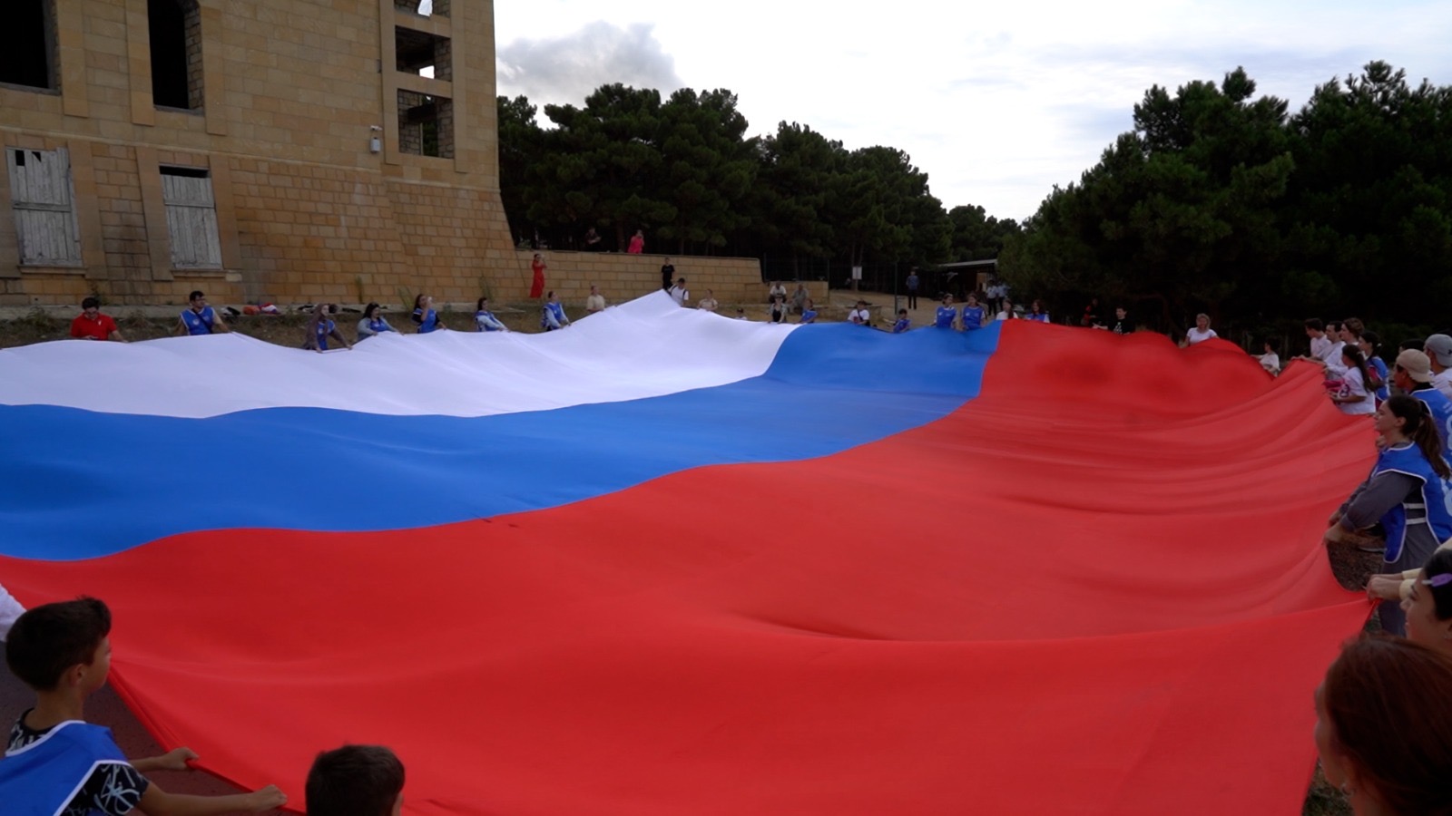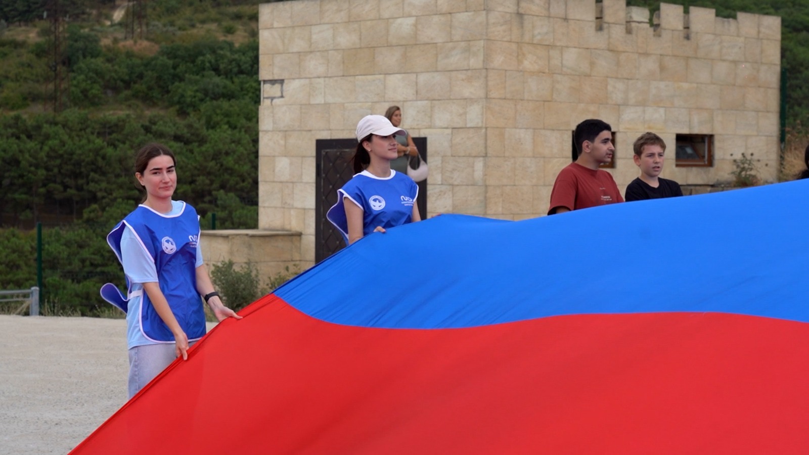 Участники акции развернули полотно российского триколора размером 30 на 25 метров.