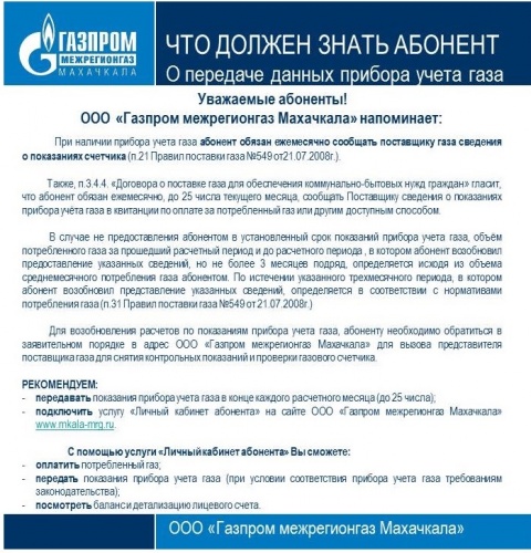 К сведению населения города Дербента, ресурсоснабжающих организаций, управляющих организаций, осуществляющих деятельность на территории городского округа «город Дербент»
