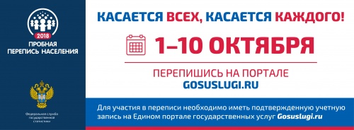 В 2020 году Правительством Российской Федерации запланировано проведение Всероссийской переписи населения. Ключевым этапом подготовки к предстоящей переписи является проведение Пробной переписи населения в октябре 2018 года. Она впервые будет проводиться в два этапа, и впервые для сбора данных о населении будут широко применяться передовые IT- решения. С 1 по 10 октября 2018 года пройдет первый этап — интернет-перепись.